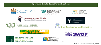 The Appraisal Equity Task Force is committed to establishing the leadership and policies to address the decades of undervaluation that has hindered wealth attainment in non-white communities. Historically redlined communities in Chicago have been systemically denied access to insurance, fair financing, and banking services which, in concert with biased appraisals, have resulted in a loss of household and community wealth and spending power. Our work is addressing improvements to protect consumers, reform of the appraisal system, and reparations for impacted neighborhoods and residents.