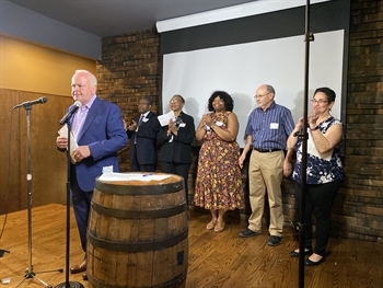 On May 19, CRN invited members, partners, and friends to join us at Revolution Brewing in Logan Square in celebration of our 45th anniversary. The evening included time to reconnect with colleagues from around the city as well as a program honoring Polk Bros. Foundation Senior Program Officer Deborah E. Bennett, Chicago 27th Ward Alderman Walter Burnett, and WBEZ report Natalie Moore for their legacies of support for affordable housing. Together, we reflected on CRN's 45 years of work for development without displacement and launched "The Road to 50"--a campaign to propel CRN forward toward a half-century of commitment to affordable housing development and preservation. Thank you to all who joined us and to our generous event sponsors. Your support makes our work possible and we look forward to traveling the Road to 50 with you!